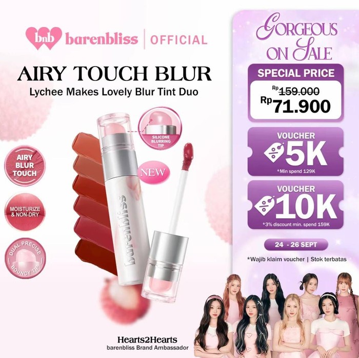 Selalu berinovasi dengan lip product yang menggemaskan, Barenbliss kembali menghadirkan produk terbaru yakni Lychee Makes Lovely Blur Tint. Produk ini menghasilkan tampilan velvet matte dengan stain yang tahan lama hingga 24 jam dan pastinya waterproof, dong!