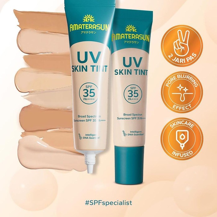 Tidak perlu khawatir akan sinar UV, skin tint ini memiliki SPF 35 PA++ yang akan melindungi kulit kamu dari sinar UV dan mencegah hiperpigmentasi.