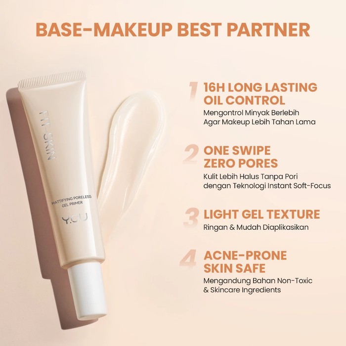Lain halnya dengan beauty brand YOU yang justru merilis gel primer yang cocok untuk semua jenis kulit. Teksturnya yang gel dengan formula Instant Soft Focus Technology akan memberikan efek kulit halus tanpa pori serta dapat mengontrol minyak hingga 16 jam.