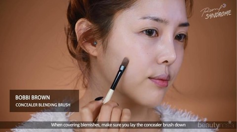 Untuk menutupi noda hitam dan lingkaran bawah mata, Pony memakai Aritaum Full Cover Cream Concealer yang memiliki dua warna berbeda serta mengandung banyak oil yang bagus banget diaplikasikan ke wajah kering meski coverage-nya nggak terlalu bagus. Saat mengaplikasikan ke noda-noda hitam di wajah, pastikan kamu memakai brush dalam posisi tidur dan menggunakan sisi yang lebih lebar. Kemudian tap dengan sponge agar hasilnya menyatu dengan foundation.