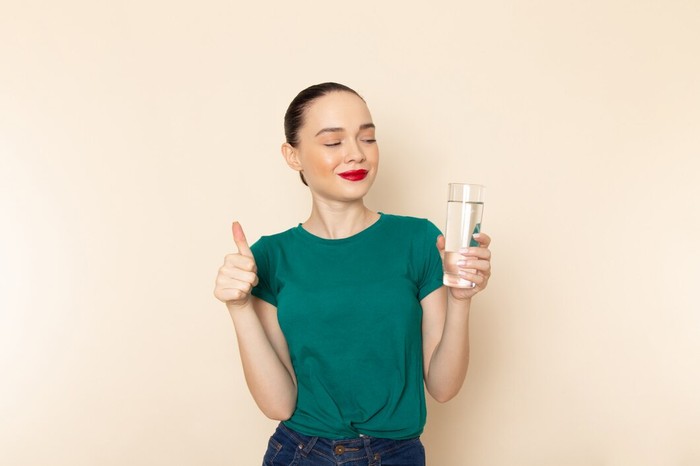 Ilustrasi perempuan yang memegang segelas air/Foto: Freepik.com/KamranAydinov