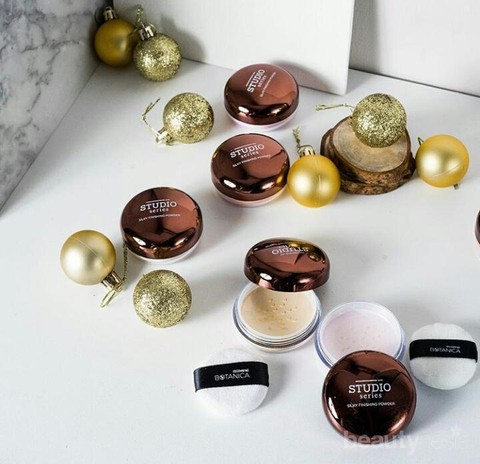 Brand yang satu ini dikenal dengan penggunaan bahan alaminya. Mineral Botanica Silky Finishing Powder Studio Series mengandung silica powder dan ekstrak Adansonia. Kandungan dalam bedak tabur ini berfungsi untuk mengurangi minyak berlebih pada wajah. Serta kandungan Vit. E dan Squalene yang dapat menutrisi kulit.