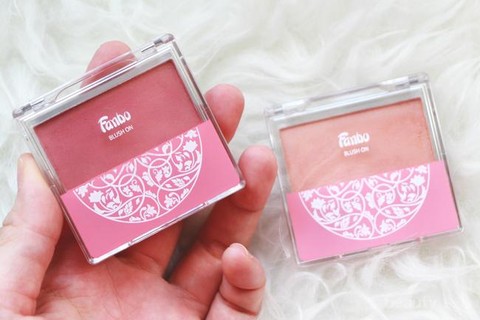 Fanbo Blush On memiliki 2 shade warna, yaitu pink dan peach yang cocok untuk semua jenis warna kulit. Packaging-nya berupa kotak plastik transparan. Teksturnya tidak powdery dan tidak chalky, serta mudah dibaurkan. Selain itu, blusher ini memiliki tekstur micro shimmer yang cenderung soft ketika diaplikasikan.