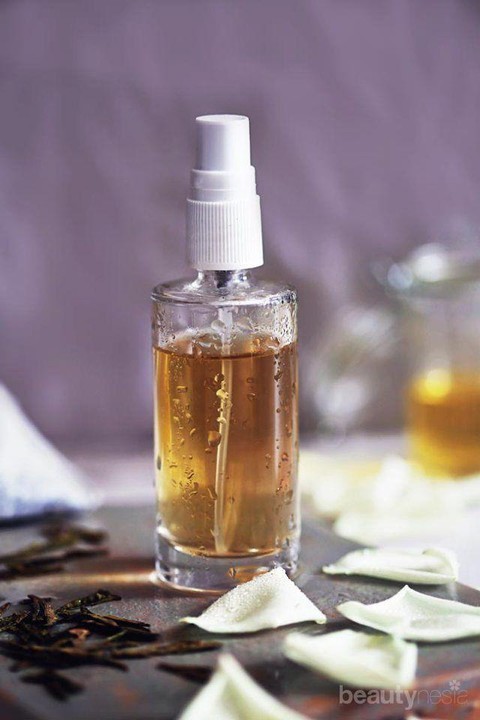 Caranya pun mudah, pertama-tama seduh terlebih dahulu teh hijau menggunakan air mendidih diamkan selama lima menit. Keluarkan teh dan pindahkan ke dalam cangkir, kemudian tambahkan dua hingga tiga tetes minyak vitamin E dan masukkan ke dalam botol spray dan siap digunakan. Selamat mencoba!