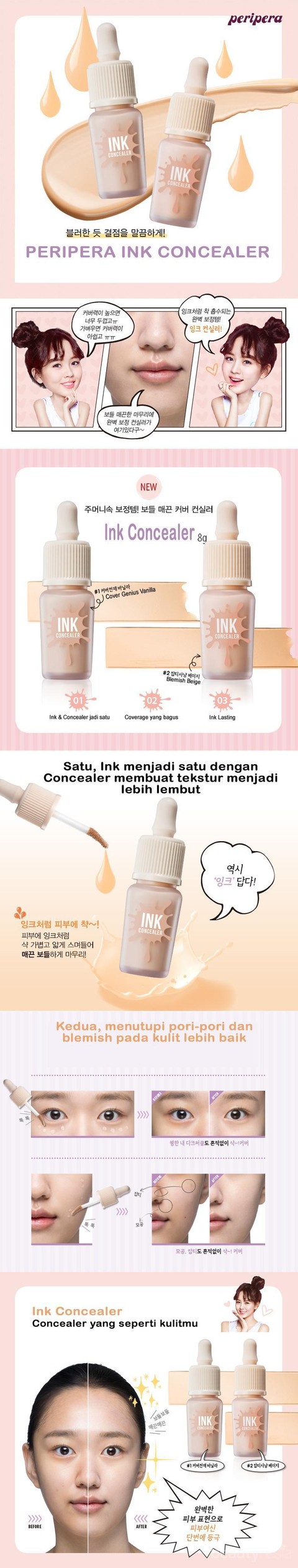 Peripera Ink Concealer ini mengeluarkan shade warna alami kulit kamu sehingga saat dioleskan seperti warna kulit asli dan mudah menyatu dengan warna kulit kamu. Concealer ini tersedia dalam dua warna pilihan dan mampu mengcover pori-pori dan blemish pada kulit