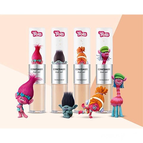 The Face Shop mempersembahkan beberapa produknya dengan desain lucu dan menarik dari karakter Trolls ini. Kemasannya sangat praktis untuk dibawa ke mana-mana dan tidak mudah tumpah lho. Kamu bisa aplikasikan bagian liquid concealer untuk menyamarkan noda hitam pada bagian bawah mata kamu. Dan untuk crayon cover sticknya bisa kamu aplikasikan untuk menutupi bagian kekurangan wajah lain seperti bekas jerawat di dagu atau pipi.
