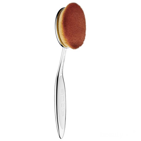 Di deretan pertama ada ARTIS Elite Mirror Oval 8 Brush, brush satu ini memiliki harga yang paling terjangkau dibanding kuas makeup ternama lainnya. Kuas ini dirancang sedemikian rupa untuk menyerupai bentuk memudahkanmu untuk mem-blending makeup. Menurut beberapa ulasan para MUA, bulunya terasa seperti bantal yang menyentuh kulit dan hasilnya juga sempurna. Kamu bisa menggunakan foundation bentuk apapun, seperti cair, krim, bedak, hingga blush on bubuk.