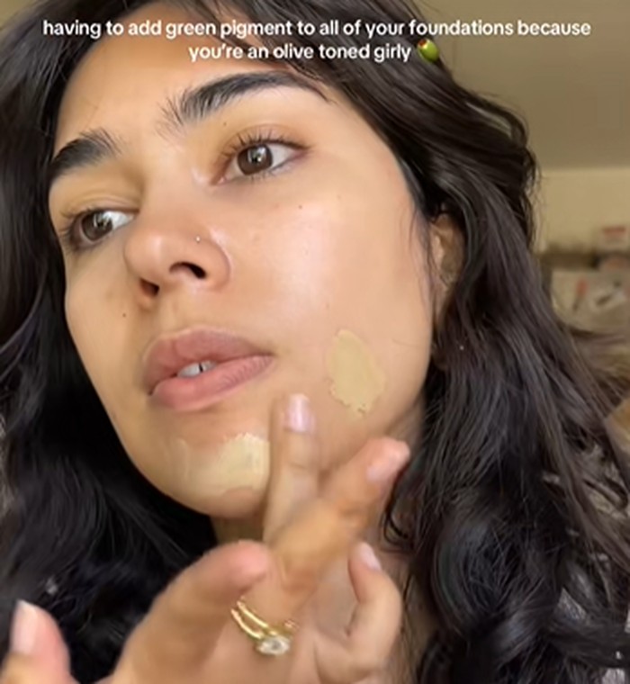 Olive undertone foundation: pilih base golden-olive agar makeup olive undertone terlihat cerah, tidak kusam, dan bebas efek abu-abu/Foto: tiktok.com/marisolmgal