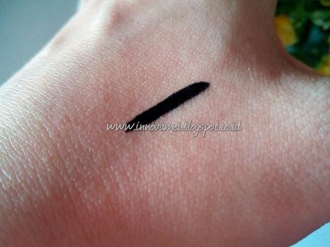 Dari segi kualitas formula, tidak perlu kamu tanya lagi. Eyeliner dengan kemasan berwarna hitam ini memiliki warna yang cukup intens dan pekat. Teksturnya sedikit glossy ketika awal dipakai, tapi kemudian akan menjadi matte setelah mengering. Selain warna hitam, eyeliner ini juga tersedia dalam warna coklat (brown), biru (blue), dan transparan (transparent).