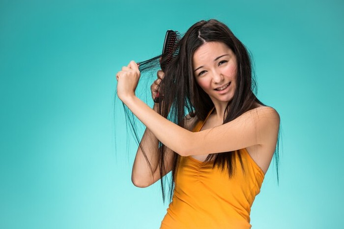 Potret perempuan yang kesulitan merawat rambutnya/Foto: freepik.com