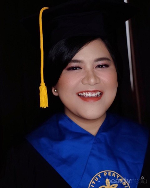 Foto: https://www.instagram.com/vinaavaniaa/Pada tampilannya saat wisuda, ia tampak menggunakan makeup dengan tema peachy, seperti yang sedang menjadi tren di Korea Selatan. Dia menggunakan blush on bernuansa oranye. Sedangkan lipstiknya tampak seperti oranye kemerahan.