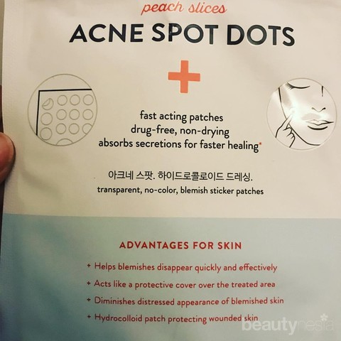 Peritel K-beauty yang populer, Peach dan Lily memiliki produk patch atau tambalan untuk jerawat sendiri yaitu Peach Slices Acne Spot Dots, bahannya lebih tipis sehingga dapat di gunakan sehari-hari dan tidak terlihat terlalu mencolok. Terdapat 3 ukuran yang bisa kamu pilih dari yang terecil hingga yang terbesar. Di banderol dengan harga Rp56.000 mendapatkan 30 stiker. Tinggal tempel ke jerawat di pipi dan basmi agar hilang.