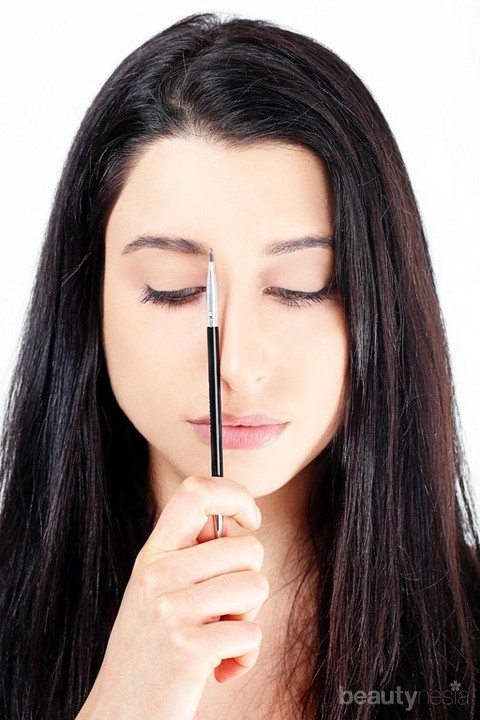 Cara ini diperlukan untuk menentukan kira-kira dari mana seharusnya pangkal alis mulai digambar. Alis yang natural adalah alis yang dimulai dari garis hidung. Oleh karena itu, ada baiknya kita membuat bagian ini terlihat berisi agar penampilan alis yang tebal namun tetap natural bisa didapat.
