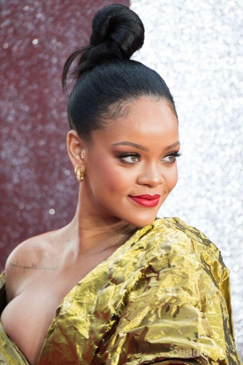 Ingin berpenampilan seperti Rihanna kayak foto ini? Gaya ini dinamakan sculptural topknot. Seperti dicepol, namun di bagian atas dan lebih rapi. Kamu membutuhkan jepit hitam kecil yang banyak untuk membuat model rambut ini agar bentuknya tahan lama dan tidak berantakan.
