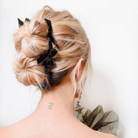 Masih menggunakan backless dress tapi sudah bosan dengan kuncir kuda? Kamu bisa mencoba gaya double buns. Kamu bisa membuat tekstur kusut ini dengan menggunakan semprotan bertekstur dari akar ke ujung rambut, kemudian putar dan ikat. Jangan lupa belilah terlebih dahulu pita untuk mengikatnya agar penampilanmu terlihat elegan dan mewah.