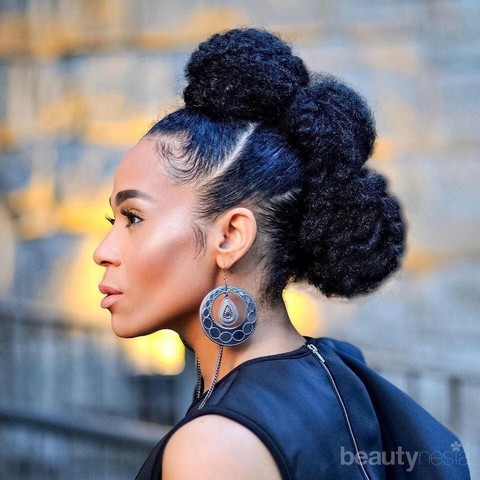 Kamu hanya perlu memisahkan rambut menjadi tiga bagian. Kemudian kuncir ketiga bagian tersebut dengan kencang dan kencangkan menjadi kuncir rambut mini dan tambahkan volume di ujung rambut. Jika kamu memiliki rambut yang lebih panjang, bereksperimenlah dengan simpul atau cepol rambut.
