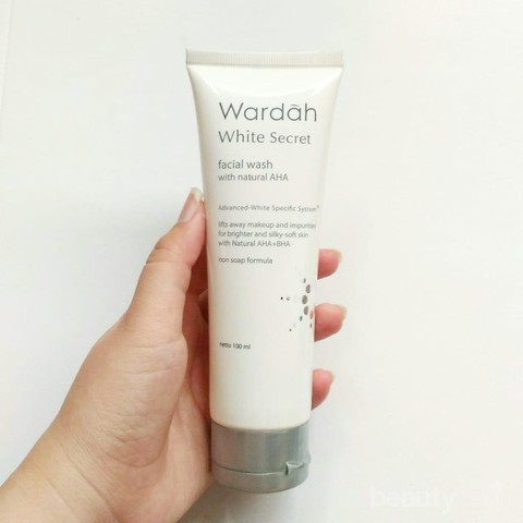 Masih dalam seri White Secret, untuk pembersih wajah berjerawat bisa memakai Facial Wash ini. Wardah White Secret Facial Wash ini mengandung mild surfactant yang akan mempercepat proses pengangkatan debu, kotoran, minyak, dan sisa make up. Produk ini membantu mencegah timbulnya jerawat baru. Tambahan AHA pada produk ini juga akan membantu kulit semakin cerah. Produk Wardah lightening ini juga membantu mengangkat sel kulit mati dan noda bekas jerawat.
