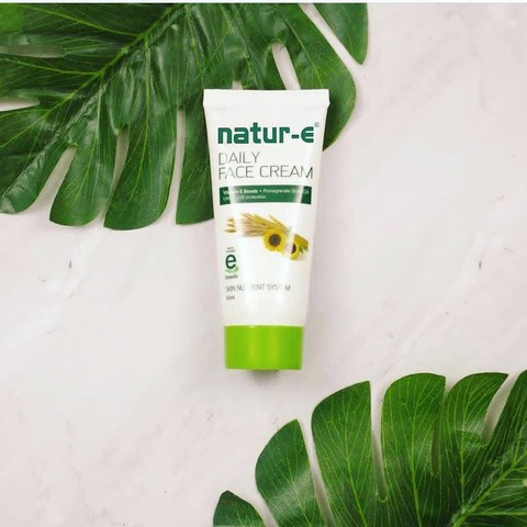Adalah Nature E Daily Face Cream yang diformulasikan dengan kandungan pomegranate seed oil yang dapat menjaga dan memberikan kelembapan di kulit. Pelembap lokal untuk kulit kering ini juga memiliki kandungan vitamin E yang tinggi, sehingga dapat meningkatkan produktifitas kolagen di kulit. Menjadikan kulit lembab, kencang dan sehat.