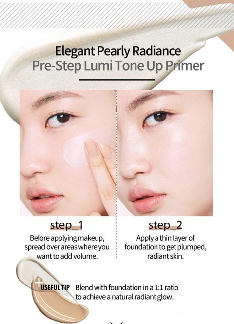 - Bisa juga kamu campur Clio Professional Pre-Step Lumi Tone Up Primer dan foundation dengan perbandingan 1 : 1 untuk mendapatkan efek glowing alami.