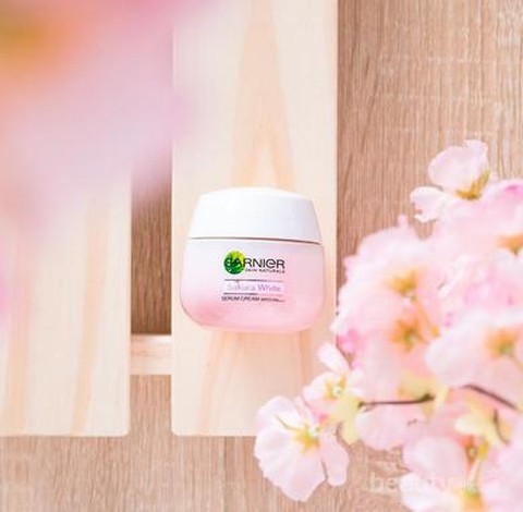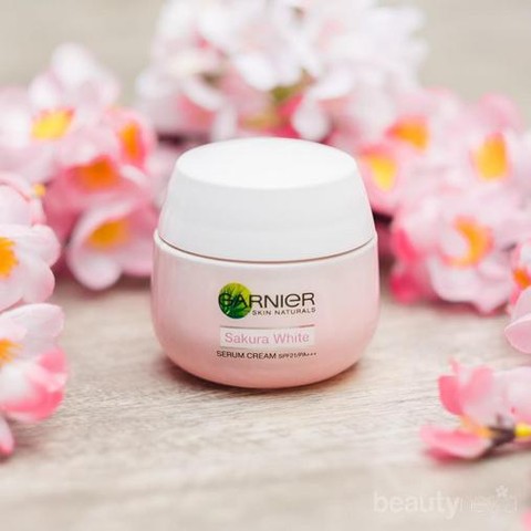 (3) Gunakan Garnier Sakura White Pinkish Radiance Whitening Cream (SPF 21/PA+++) di Pagi Hari
