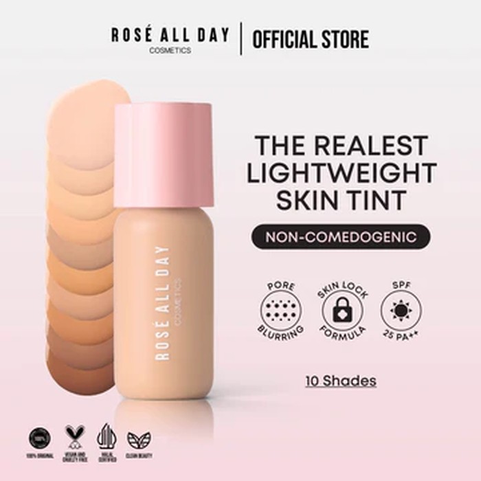 Rose All Day juga punya produk skin tint andalan yang dilengkapi dengan anti pollutant dan SPF 30 PA++. Teksturnya ringan, mudah di blend dan tidak menyebabkan pori-pori tersumbat. Diperkaya kandungan Niacinamide dan Squalane untuk merawat, melembabkan dan mengontrol minyak.