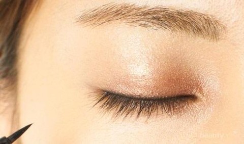 1. Usapkan eyeshadow berwarna beige atau gold sebagai base pada seluruh kelopak matamu.