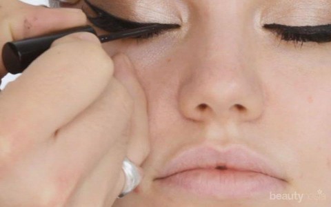 Saat eyeliner di bagian garis mata sudah sesuai keinginan, barulah Michael memulai membuat wing eyeliner. Mulai dari akar bulu mata, gambar ke atas luar sekitar 45 derajat ke arah pelipis. Tak perlu khawatir saat membuat kesalahan dalam menggunakan eyeliner, karena makeup artist Adele ini pun mengaku menggunakan Bioderma untuk membenarkannya.