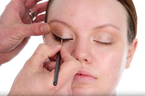 Michael memulai dengan menggunakan MAC Pro Longwear Paint Pot dalam shade Groundwork menggunakan concealer brush di seluruh kelopak mata. Ini dijadikan untuk base riasan mata selanjutnya. Kemudian, Michael memakai produk Tom Ford Eye Quad dalam shade Nude Dip. Gunakan dua warna paling terang dalam palet Tom Ford tersebut di kelopak mata yang dibaurkan hingga tulang alis sampai halus.