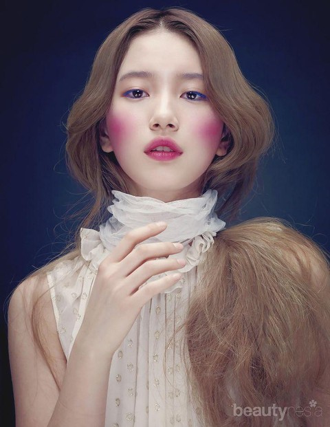 Foto: IstimewaDalam foto ini, Suzy nampak tampil dengan riasan makeup bold bertema dreamy doll like. Penggunaan blush on berwarna cerah dan tegas memperlihatkan sisi unik seperti riasan boneka. Warna-warna cerah juga hadir di bagian wajah yang lain. Pada tepi kelopak mata, kita bisa melihat penggunaan eyeliner berwarna biru terang. Ditambah lipstik ombre yang membuat riasan wajah Suzy semakin terkesan manis. Look ini cocok untuk kamu yang ingin melakukan pemotretan ya ladies.