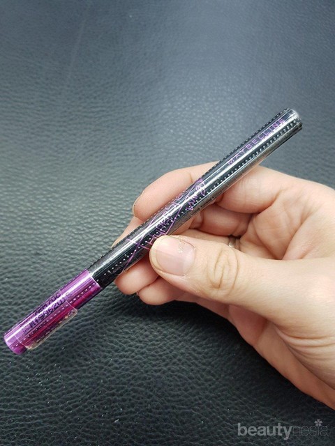 Maybelline Hypersharp Wing Eyeliner mempunyai packaging yang menarik. Packagingnya berbentuk eyeliner spidol berwarna hitam dengan tutup, berwarna ungu metalik. Kamu juga bisa melihat nama produk yang tercetak dengan jenis ulasan edgy pada bagian badan eyeliner. Perpaduan warna hitam dan ungu metaliknya terlihat cocok banget, lho! Selain itu, Maybelline Hypersharp Wing Eyeliner ini juga membuat 2 sisi brush yaitu brush yang super super thin ukuran 0.01mm serta yang lebih tebal ukuran 2.00mm, ladies sehingag cucok banget buat membuat wing eyeliner.