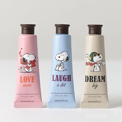 Produk dengan packaging karakter Snoopy ini, memiliki aroma yang tahan lama. Apalagi tekstur krimnya ringan, sehingga bisa meresap di kulit dengan cepat. Hand cream ini dijual dalam satu set yang berisi 3 produk sekaligus dengan harum yang berbeda-beda. Produk dari Innisfree ini memiliki formula solid perfume, sehingga aromanya bisa tahan lebih lama.