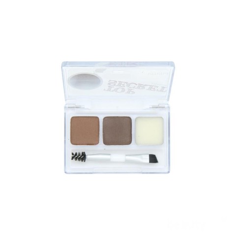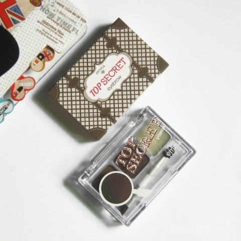 Tidak hanya mudah dalam hal cara membuat alis, produk ini juga memiliki packaging yang super menggemaskan. Boxnya berupa kertas yang pada bagian kanan dan kirinya berlubang. Sehingga untuk mengeluarkan produknya kamu tinggal slide ke kanan atau kiri. kemasan dari pruduknya sendiri transparan karena terbuat dari acrylic. Pada bagian depan-nya terdapat desain gambar kaca pembesar yang bertuliskan Top secret. Di dalamnya terdapat 2 eyebrow powder datu wax dengan brush dan spoolie yang bisa membantu kamu untuk mendapatkan bentuk alis yang bagus sesuai dengan keinginan kamu. Namun yang amat disayangkan dari produk ini adalah tidak disertai dengan cermin.