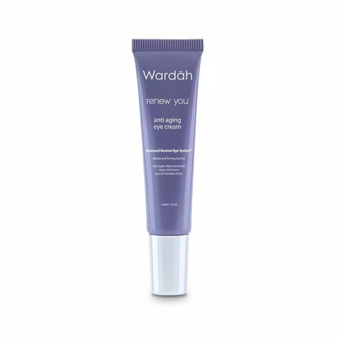 Brand lokal yang satu ini memang tak henti-hentinya membuat inovasi produk terbaru. Wardah kali ini juga mengeluarkan produk halal untuk menyamarkan tanda-tanda penuaan dini pada area sekitar mata. Sesuai dengan namanya, Wardah Renew You Anti Aging ini mampu mengurangi kerutan, garis-garis halus, kantung mata, noda hitam, bahkan kulit kusam yang ada di area sekitar mata.