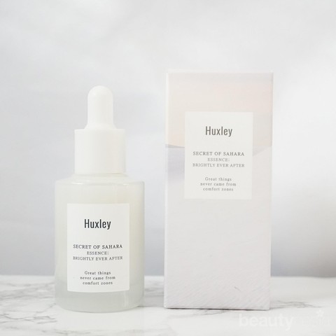 Di deretan terakhir ada Huxley Essence; Brightly Ever After. Essence satu ini mengandung Niacinamide yang memiliki fungsi untuk mencerahkan kulit, ekstrak kaktus agar kulitmu tetap lembap, serta OdeetoxTM yang dapat menghambat melanin.
