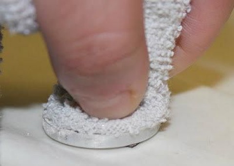 5. Bungkus kepingan logam dengan menggunakan handuk. Gunakan ini untuk menekan adonan eyeshadow yang sudah dituang ke dalam eyeshadow pan. Hal ini bertujuan untuk membuat eyeshadow menjangkau bagian dasar eyeshadow pan sehingga eyesahdow tidak mudah retak.