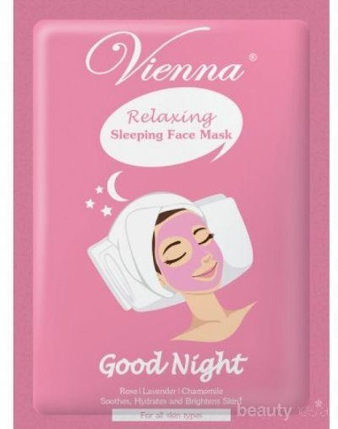 Vienna Relaxing Sleeping Face Mask ini merupakan sleeping mask terbaik dari produk lokal yang sejauh ini dapat ditemukan di drugstore. Sleeping mask terbaik ini diklaim dapat melembapkan, menghidrasi dan relaksasi selama tidur semalaman. Diperkaya rose, lavender dan chamomile yang dapat menyejukan kulit, herbal whitening complex untuk membuat kulit lebih putih dan lebih cerah, serta Hyaluronic Acid sebagai pelembab dan merawat kulit agar lebih muda. Karena sleeping mask ini mengandung pelembap, jadi kemungkinan besar produk ini diperuntukkan bagi pemilik kulit kering.