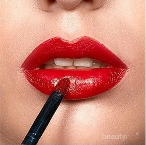 Caranya bisa dimulai dengan membuat garis dibagian terluar membentuk bibir kemudian oleskan lipstick seperti biasa. Kemudian, oleskan
