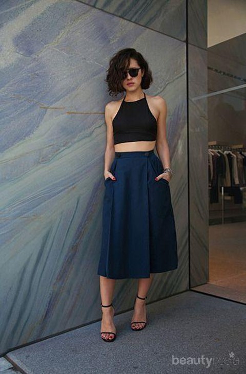 Jika kamu memutuskan untuk membuat gaya rambut pendek yang curly, kamu perlu bersiap untuk penampilan serba cute. Kamu bisa mencoba siluet busana dua potong berupa crop top dan juga midi skirt. Pesona busana dua potong bisa semakin maksimal jika kamu memilih siluet fit untuk atasannya dan flare untuk bawahan. Namun, tetap memilih yang cocok dengan gaya rambut, ya. Jika rambut curly-mu panjang, sebaiknya hindari atasan yang banyak detail. Sebab akan terlihat penuh pada look bagian atas.