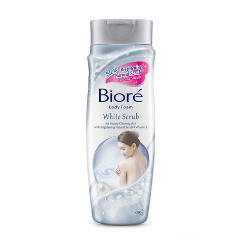 Biore Body Foam Whitening Scrub salah satu Sabun cair yang bagus untuk memutihkan kulit lho Ladies! Sabun ini mengandung ekstrak teh hijau, vitamin E dan brightening beads yang mampu membersihkan kulit secara optimal, melembutkan dan juga mencerahkan. Sabun ini juga dilengkapi dengan scrub, sehingga dapat membantu mengangkat sel-sel kulit mati membuat tubuh terlihat lebih bersih.