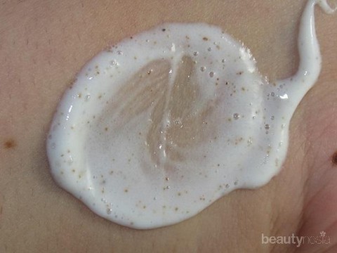 Masker ini mengandung butiran scrub halus yang bisa melembutkan kulit wajah. Butiran scrub ini tidak terlalu kasar, sehingga bisa mengangkat sel kulit mati tanpa membuat kulit teriritasi. Bonusnya, formula produk ini bisa kamu manfaatkan dalam 2 cara: yaitu sebagai scrub untuk digosok pada wajah, atau sebagai masker untuk didiamkan pada permukaan kulit.
