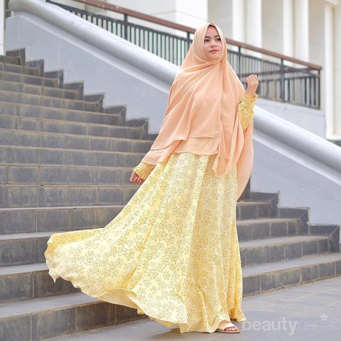 Tampil cantik dengan syar'i warna kuning bisa menjadi inspirasi buat kamu yang berhijab. Busana syar'i tidak hanya cocok untuk digunakan sebagai busana casual namun juga bisa kamu kenakan untuk menghadiri acara formal. Pilihan yang tepat untuk syar'i warna kuning adalah dengan motif full flower yang manis. Untuk hijabnya sendiri tidak perlu senada, kamu bisa memilih perpaduan warna netral atau warna pastel yang bikin wajah kamu nampak lebih cerah.