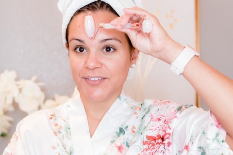 Saat sedang menggunakan produk skincare terutama sheet mask, barengi dengan pijatan menggunakan jade roller karena dapat memaksimalkan proses penyerapan produk hingga ke dalam lapisan epidermis kulit. Sehingga kulit wajah akan terasa lebih kenyal.