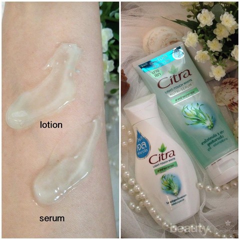 Mirip dengan lotion, Citra Light Touch Japanese Wakame serum ini juga bertekstur gel dengan warna yang transparan namun lebih bening. Floral scent-nya tercium agak sedikit lebih kuat dibandingkan dengan lotion. Nutrisi serum ini bahkan 3 kali lebih cepat menyerap dibandingkan dengan lotion biasa.