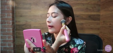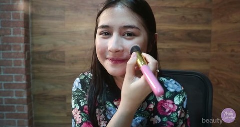 Make up routine Prilly yang selanjutnya ialah memulaskan blush on pada apple of her cheeks untuk memberikan rona segar bagi wajahnya. Karena wajahnya cukup putih, Prilly memilih menggunakan blush berwarna pink terang yang cocok untuk kulitnya. Sedangkan, jika kulit kamu lebih sawo matang, Prilly menyarankan untuk menggunakan blush berwarna peach atau pink tua, ladies.