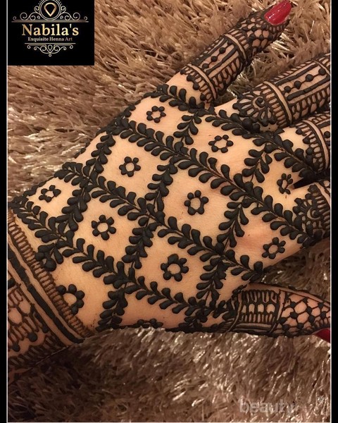 Foto: Istimewa Desain menhdi ini terlihat simpel tetapi memiliki pola yang cukup rumit. Kamu bisa menggunakan menhdi ini untuk menonjolkan kesan mewah yang elegan.