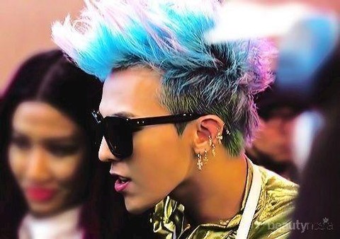 Rambut G-Dragon kali itu berwarna dominan biru. Namun kombinasi rambut biru dan ungu di bagian belakangnya akan terlihat seperti semburan warna yang lain saat berada di luar ruangan. Secara samar, kamu juga akan melihat warna rambut yang kehijauan dan kemerahan akibat warna biru dan ungu yang terkena paparan sinar matahari.