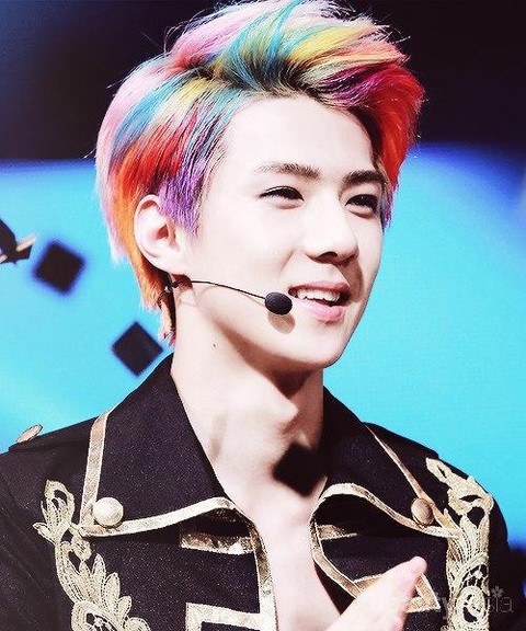 Anggota EXO berwajah tampan ini memang cocok dengan warna rambut yang terang. Walaupun warna rambut ini membuat penampilan seseorang terlihat sangat mencolok dan menjadi pusat perhatian, Sehun justru merasa cocok dan percaya diri dengan warna rambut ini.