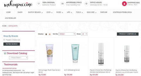 Makeupuccino rata-rata menjual skincare yang berasal dari Amerika. Selain skincare, Makeupuccino juga menjual berbagai produk makeup dengan harga yang terjangkau. Untuk kualitas kamu tidak perlu khawatir lagi karena online shop yang satu ini cuma menjual produk asli. Kelebihan lainnya adalah proses pengiriman yang sangat cepat sehingga membuat kita puas dan ingin membeli dari online shop ini. Selain memiliki situs, Makeupuccino juga memiliki Instagram yang menampilkan produk-produk yang mereka jual dan dikemas secara menarik. Kalau melihat-lihat disini rasanya pingin beli semua produknya!