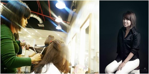 “Aku emang udah niat mau warnain rambut aku, kebetulan warna rambut aku sudah pudar hasil dari colouring beberapa bulan lalu. Di sini aku bisa konsultasi dengan hairstylist-nya yang sudah berpengalaman, namanya Mbak Febri, yang sudah 9 tahun bekerja sebagai hairstylist. Dia kasih saran warna apa saja yang cocok dengan tone kulit aku yang kuning langsat. Setelah pilih-pilih, akhirnya aku memutuskan mau warna apa.