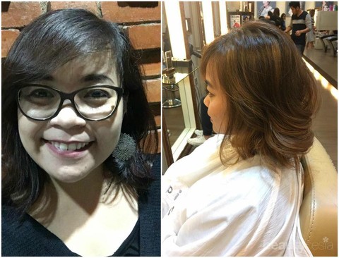 Setelah selesai, aku lihat hasilnya dan surprised banget dengan wana rambut aku yang sangat shiny. Aku suka dengan gaya dan perpaduan warna yang diaplikasikan ke rambut aku. Definitely falling in love with this new colour karena membuat wajah aku menjadi cerah.”